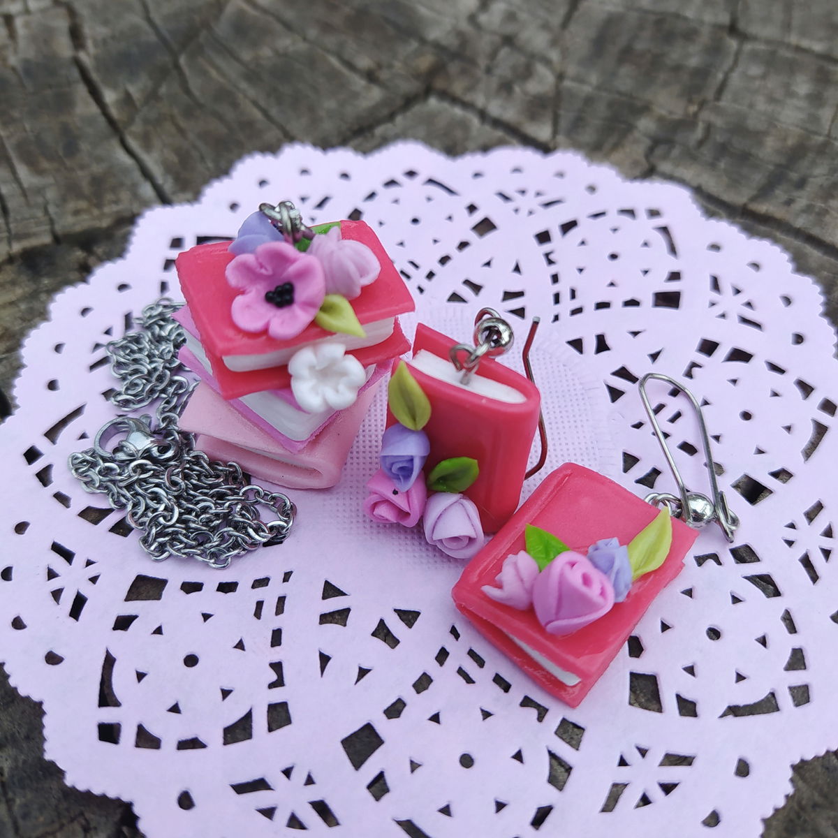 Irresistible conjunto de aros y dije hecho a mano. Incluye cadenita de acero quirúrgico.